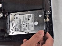Lift the hard drive from the device and unconnect the cord attached to it.