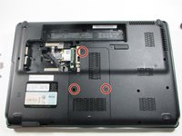 Flip the laptop over and locate the memory module panel and loosen the 3 screws holding down the panel.