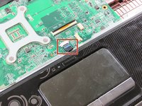 Disconnect the touch pad ribbon cable from the system board by gripping and pulling the blue tab toward you.