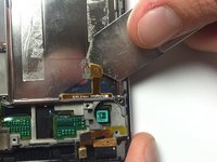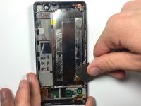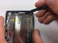 Use the pointy end of a spudger to peel back and fold down the black plastic cover near the bottom left of the phone.