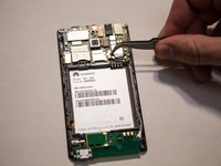 Lift the battery out of the phone with your fingers by pressing forward and lifting upward.