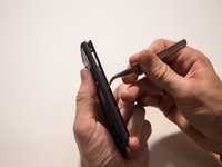 Lift the battery out of the phone with your fingers by pressing forward and lifting upward.