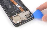Slide an opening pick under the motherboard cover next to the cameras and carefully pry it up by twisting the opening pick sideways.