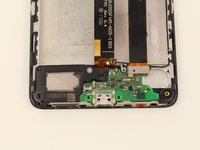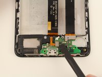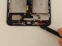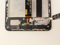 Pry the speaker and microphone assembly off of the phone by sliding a spudger down along the bottom.