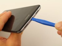 Slide the opening tool or spudger along the bottom of the phone and around the edge.