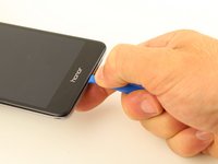 Insert a plastic opening tool into the Micro USB charging port with the the angled side of the tool facing the screen.