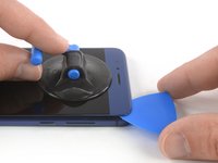 Once the screen is warm to the touch, apply a suction cup near the top edge of the phone right under the earpiece speaker.