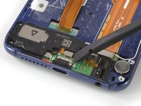 Use a pair of tweezers to remove the metal bracket that sits on top of the fingerprint and display flex connectors.
