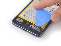 Slide the opening pick along the top edge of the phone to cut the adhesive.