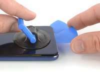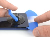 Lift the rear glass with the suction cup to create a small gap between the glass and the frame.
