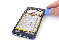 Insert the long edge of an opening pick in the seam between the midframe and the bezel on the left side of the phone.