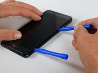 Slowly slide the plastic opening tool around the outside of the LCD Display to break through the adhesive.