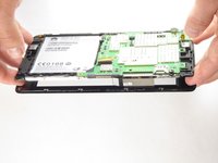 Using a plastic opening tool, pry off the back casing gently on each side of the tablet.