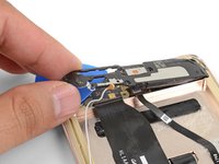 Use an opening pick to slice through the adhesive on the left edge of the phone.