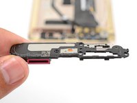 Grasp the loosened edge of the loudspeaker and gently pull the assembly away from the bottom edge of the phone.