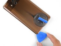 After you cut through the adhesive around the entire perimeter of the back cover, begin to lift it away from the phone.