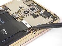 Slowly peel the black heat dissipation layer away from the phone. It is held in place with small patches of adhesive.