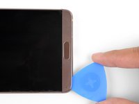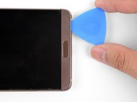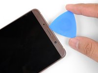 Use an opening pick to slice through the adhesive on the left edge of the phone.