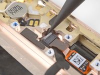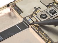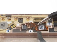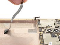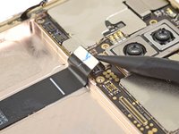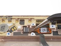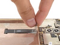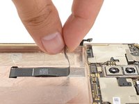 Use tweezers to peel the tape covering the fingerprint sensor cable connector near the bottom edge of the phone.