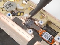Use the point of a spudger to pry up and disconnect the wide interconnect flex cable from its motherboard socket.