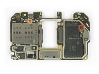 Behold, the wonderful inner workings of Huawei's new flagship! The first thing to catch our eye is a huge flex cable running from the daughterboard up to the main board, where all the exciting chips live.
