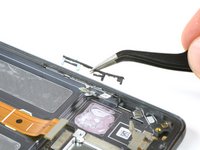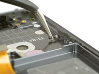 Proceeding with our teardown, we remove one of the many liquid indicators and all the Phillips screws we can find, as well as a small metal shield covering the flex connection for the fingerprint sensor.