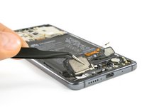 After the removal of another metal shield and two antenna cables, we go on and lift out the flex cable.