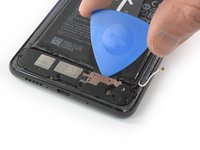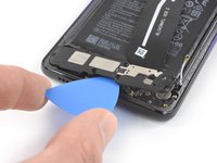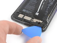 Work your way along the bottom edge of the loudspeaker cover into the direction of the charging port. Use the opening pick to pry up the loudspeaker during this procedure.