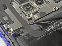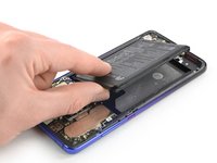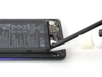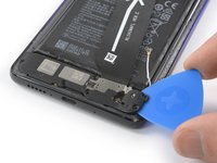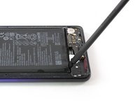 Slide an opening pick under the bottom end of the black protective foil that covers the battery. Use the opening pick to loosen the adhesive that attaches the foil to the loudspeaker.