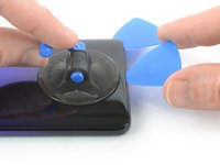 Insert a second opening pick and slide it to the bottom left corner to cut the adhesive.