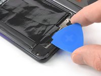 Use the spudger to pry up the battery until you created a small gap underneath. Try your best not to deform the battery during this procedure.