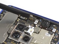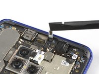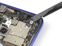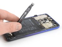 Slide an opening pick under the bottom end of the black protective foil that covers the battery. Use the opening pick to loosen the adhesive that attaches the foil to the loudspeaker.