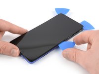Slide the opening pick along the top edge of the phone to cut the adhesive. Leave the pick in the top right corner of the screen to prevent the adhesive from resealing.