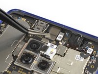 Use a pair of tweezers to peel the silver protective tape off the front facing camera’s flex connector.