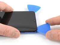 Insert a second opening pick and slide it to the bottom left corner of the phone to cut the adhesive.