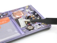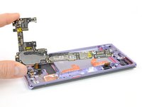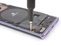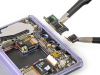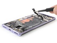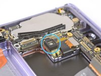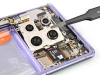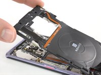 With just a few flicks and swishes with our precision bit driver, we remove the classic plastic combo frame: flash, NFC coil, and a wireless charging coil.