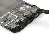 Use a spudger to remove the loudspeaker and the charging port. There is some adhesive underneath and the unit might be a little bit sticky.