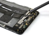 If the battery is not freed, use an opening pick to pry under the battery, freeing it from the remaining adhesive.