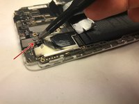 To protect the internal cables and components, you will need to carefully disconnect the battery connector. Ensure the 1.3 mm Phillips #000 screws securing the metal plate is removed with a Phillips 000 screwdriver.