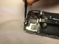 To remove the front-facing camera, peel off the conducting fabric from the metal shield on the display assembly.
