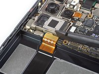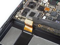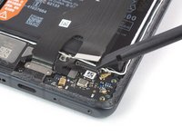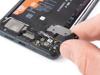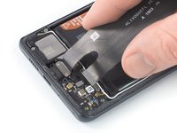 Remove the main flex cable including the charging port by lifting it upwards and then pulling it in the direction of the motherboard.