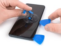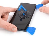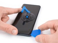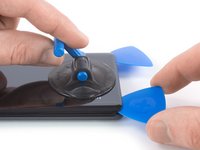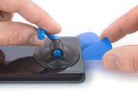 Pull the suction cup upwards and insert an opening pick in the gap between the display glass and the plastic bezel.