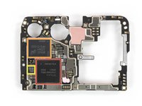 Next out is the wireless charging coil attached to the motherboard cover, which also carries some antennas and a strange orange flex cable to bridge two contacts—what for, we're not sure.