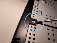 With a flathead screwdriver, unclip the 2 topside clips, and 3 clips on the bottom of the enclosure, and the front will detach.