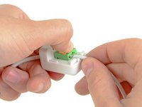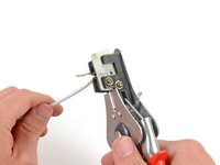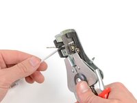 Squeeze the wire stripper to remove the outer cord tubing, revealing wire strands beneath.