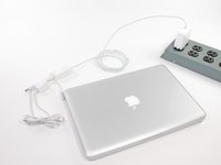 Connect the modified MagSafe Cable to the MacBook Car Charger to power and recharge your MacBook in the car.