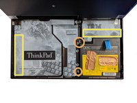 Lift the battery using it's cloth pull tab and lift it out of the ThinkPad. Set it aside.