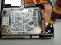Remove the final two screws (shown) and slide out the hard drive.