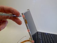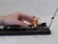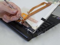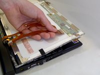 Unplug the orange LCD screen cable from the small circuit board near the laptop keyboard.