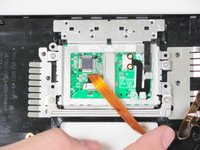 Using your fingers, remove the plastic film that covers the two connectors to the touchpad.